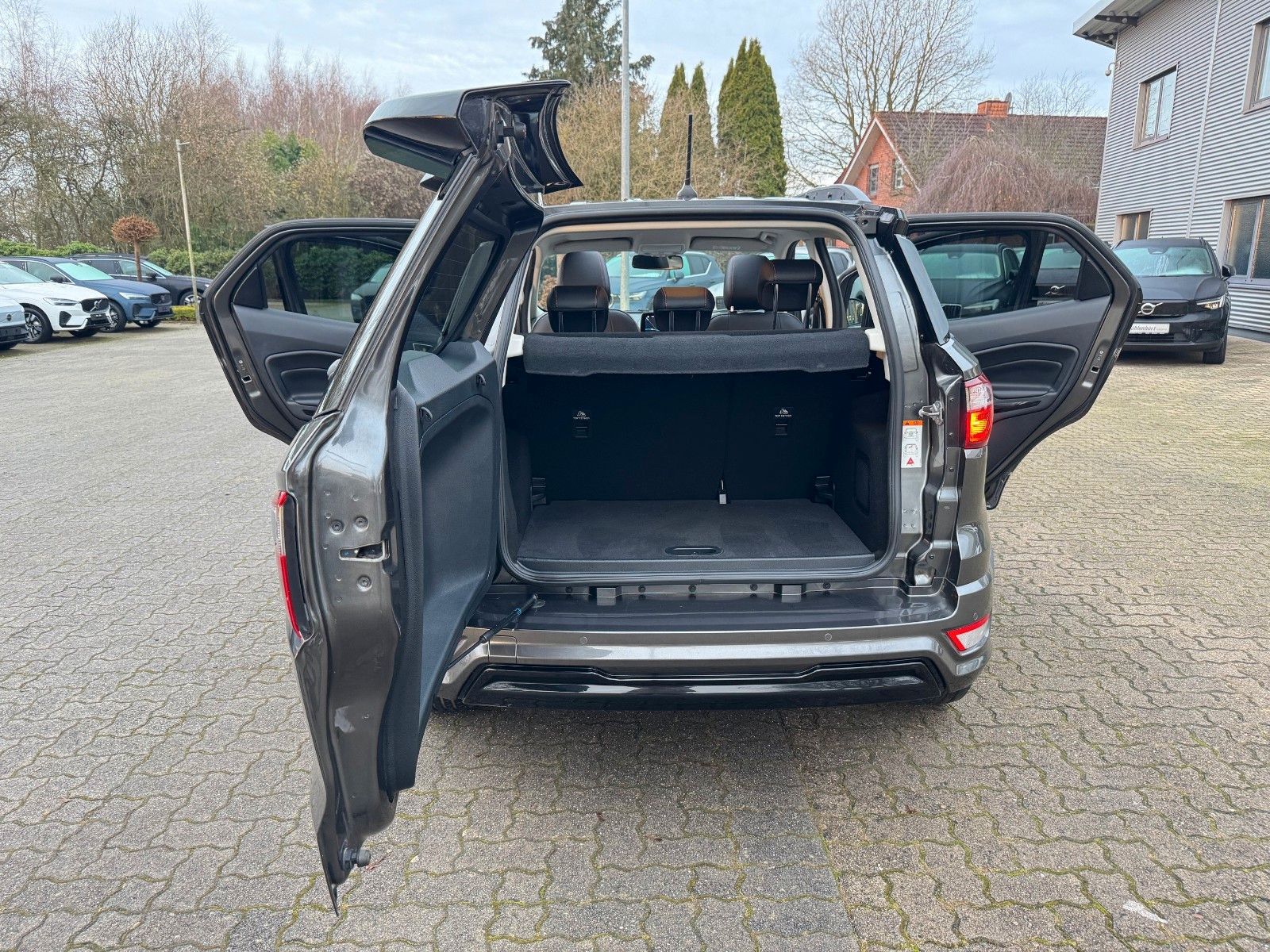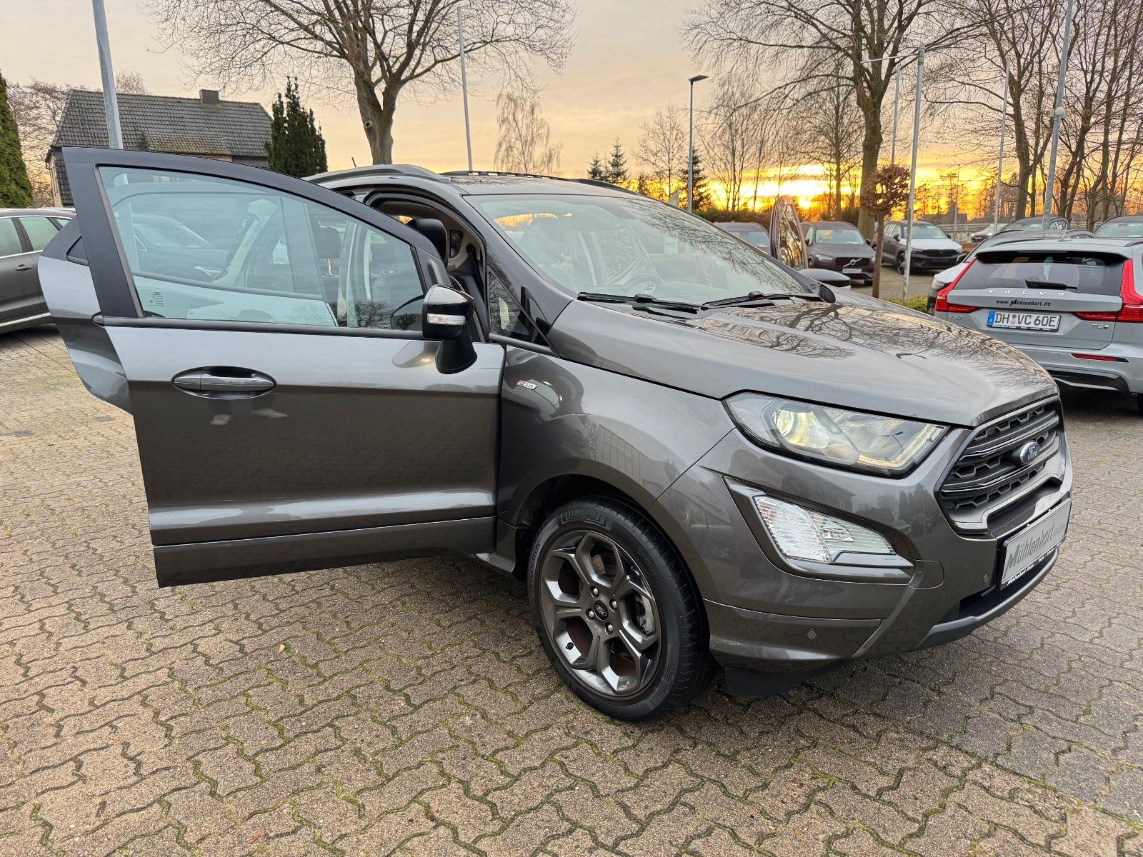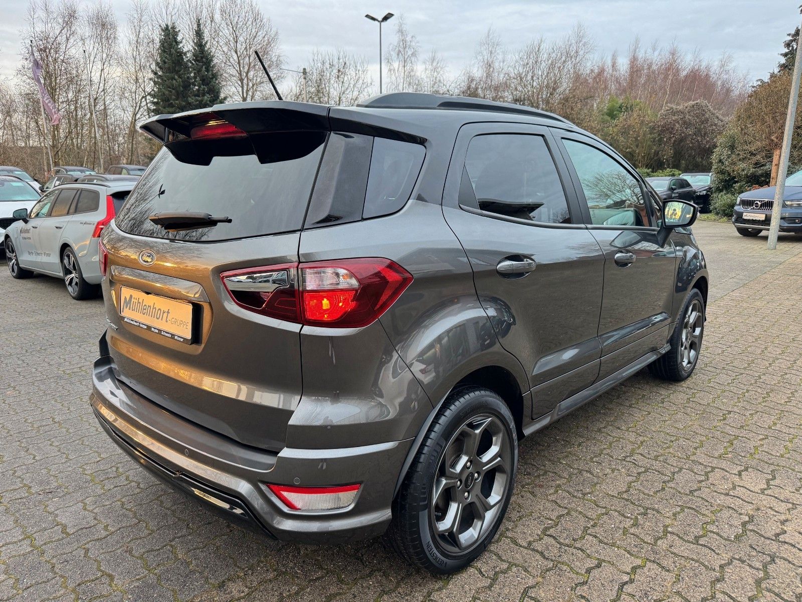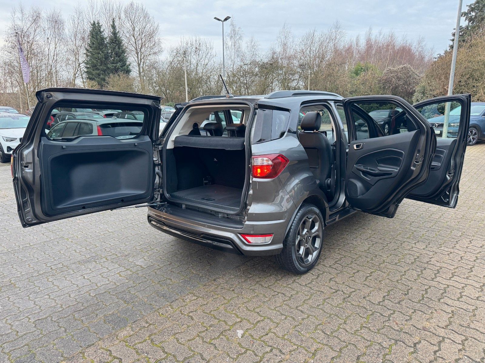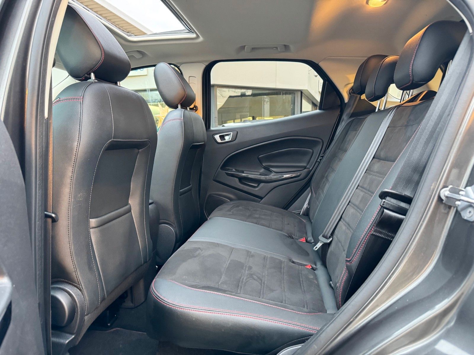 Ford EcoSport 1,0 EcoBoost 6-Gang Schaltegetriebe ST-Line inklusive Cool & Sound-Paket bestehend aus Audiosystem: Radio mit Ford SYNC (AppLink und Touchscreen), Radioempfang digital (DAB), Audiobedienung am Lenkrad, 6 Lautsprecher, Sprachsteuerung und Bluetooth-Schnittstelle, Vorrüstung Mobiltelefon/Handy mit Bluetooth-/USBSchnittstelle, USB-Anschluss, Fahrassistenz-System: Sicherheitssystem SYNC mit automatischem Notruf, AUX-INAnschluss, FordPass Connect inkl. eCall, Farbdisplay (8 Zoll), Klimaautomatik, Handschuhfach mit Kühlfunktion, Design-Paket 4 bestehend aus Dachspoiler (große Ausführung) Wagenfarbe, Verglasung hinten abgedunkelt (Privacy Glass), Easy-Driver-Paket 2 bestehend aus Außenspiegel elektr. anklappbar, Parkpilotsystem vorn und hinten, Parkpilotsystem hinten, Rückfahrkamera, Komfort-Paket bestehend aus Schiebe-/Hebedach elektrisch (Glas), KeyFree-System, Winter-Paket bestehend aus Frontscheibe heizbar, Frontscheibe teilweise heizbar, Sitzheizung vorn, Lenkrad heizbar, 17" Leichtmetallräder Y-Design, Ambiente-Beleuchtung vorn (LED), Antriebsart: Frontantrieb, Außenspiegel elektr. verstell- und heizbar, Blinkleuchte in Außenspiegel integriert, Bordcomputer, Brillenfach in Dachhimmel / Dachkonsole integriert, Dach andersfarbig lackiert / Kontrastfarbe, Dachreling schwarz, Diebstahl-Warnanlage, Fahrassistenz-System: Berganfahr-Assistent (Hill-Holder), Fahrassistenz-System: Notbrems-Assistent, Farbdisplay für Bordcomputer, Fensterheber elektrisch vorn + hinten mit Komfortschließung, Gepäckraumabdeckung / Rollo, Geschwindigkeits-Regelanlage (Tempomat), Getränkehalter vorn, Heckscheibe heizbar, Innenspiegel mit Abblendautomatik, Intelligent Protection System (IPS) (Knieairbag Fahrerseite, Airbag Fahrer-/Beifahrerseite, KopfSchulter-Airbag vorn und hinten, Seitenairbag vorn), Isofix-Aufnahmen für Kindersitz, Kühlergrill Anthrazit, Lendenwirbelstütze Sitz vorn links, Lenkrad (Leder 3-Speichen), Mittelkonsole mit Armlehne, Modellpflege, My Key (2. Fahrzeugschlüssel programmierbar), Navigationssystem, Nebelscheinwerfer, Power KeyFree-Startfunktion, Rücksitzlehne geteilt/klappbar (60:40), Schaltpunktanzeige, Scheibenwischer mit Regensensor, Scheinwerfer mit abgedunkelten Hintergrund, Scheinwerfer-Assistent mit Tag-/Nachtsensor, Sitzbezug / Polsterung: Teilleder schwarz, Sitz vorn links höhenverstellbar, Start/Stop-Anlage, Stau-/Ablagefach unter Sitz vorn rechts, Stoßfänger Sport-Ausführung, Tagfahrlicht LED, Wankneigungskontrolle (Roll Stability Control, RSC) u.v.m.