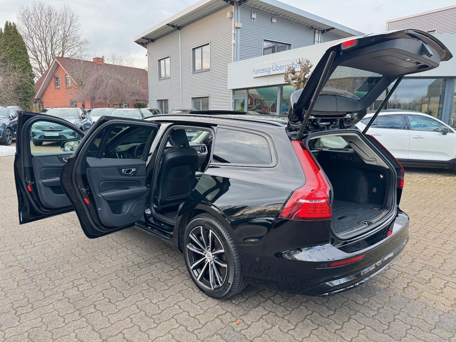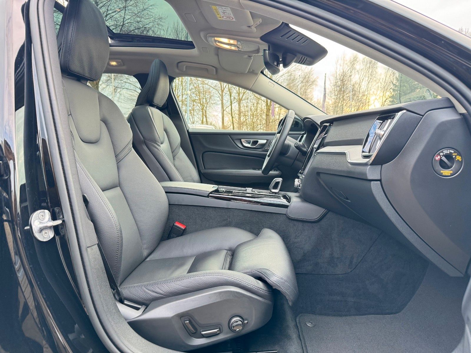 Volvo V60 T6 Recharge AWD Geartronic Automatik Plus Dark inklusive Licht-Paket bestehend aus Scheinwerferreinigungsanlage, Voll-LED-Scheinwerfer „Thors Hammer“ Active High Beam mit erweitertem Fernlicht, dynamischem Kurvenlicht, intelligentem Fernlichtassistenten mit adaptiver Leuchtweitenregulierung und integriertem LED-Tagfahrlicht, Winter-Paket bestehend aus Lenkradheizung, Sitzheizung hinten (äußere Sitze der 2. Sitzreihe), Sitzheizung vorn, Standheizung mit Timer (elektrisch), 18" Leichtmetallräder 5-Doppelspeichen-Design, Ambientebeleuchtung, Android Infotainmentsystem (9"-Touchscreen (22,9-cm-Diagonale), Bluetooth®-Freisprecheinrichtung inkl. Audiostreaming, Digitale Fahrzeugbedienungsanleitung, Digitaler Radioempfang (DAB+), 2 USB-C-Anschlüsse (kompatibel mit Apple iPod®/iPhone®/iPad), Antriebsart: Allradantrieb AWD, Audiosystem High Performance Sound, Befestigungssystem für Tragetaschen im Gepäckraum, Beinauflage einstellbar für Fahrer- und Beifahrersitz, CleanZone Luftqualitätssystem, Digital Services (Google Services, Volvo On Call), Digitale Instrumentierung 2. Generation, Driver Assistance bestehend aus Adaptive Geschwindigkeitsregelanlage, Emergency Stop Assist (automatisches Nothaltesystem bei Nichtbeachtung von Warnhinweisen infolge von ausbleibenden Lenk-, Brems- und Beschleunigungsaktivitäten des Fahrers inkl. Aktivierung der Warnblinkanlage und automatischer Bremsung bis zum Stillstand), Pilot Assist (Spurführungsassistent mit adaptiver Geschwindigkeitsregelanlage bis zu Geschwindigkeiten von 130 km/h), Driver Awareness bestehend aus Blind Spot Information System (BLIS®) – Totwinkelassistent inkl. Spurwechsel-Warnung vor sich schnell nähernden Fahrzeugen inkl. Lenkeingriff bei Nichtbeachtung der Warnsignale, Cross Traffic Alert (CTA) – Querverkehrs-Warnung mit Bremseingriff – Warnung vor sich seitlich nähernden Fahrzeugen, Fahrradfahrern und Fußgängern beim rückwärtigen Ausparken inkl. Bremsung bis zum Stillstand bei Nichtbeachtung der Warnsignale, Heckaufprallabschwächung – Präventivschutz bei drohenden Heckkollisionen durch schnelles Aufleuchten des Warnblinklichts, Festbremsen des Fahrzeugs und Straffen der Gurte, Elektrisch einstellbarer Beifahrersitz mit Memoryfunktion, Elektrisch einstellbarer Fahrersitz mit Memoryfunktion für Fahrersitz- und Außenspiegeleinstellung (in Funkfernbedienung gespeichert), Gepäckraum-Trennnetz, Getriebe Automatik - Geartronic (8-Stufen), Heckklappenautomatik (elektrisch), Keyless Drive (elektronisches Zugangssystem) mit sensorgesteuerter Heckklappe, beleuchteten Türgriffen und Bodenleuchten, Klimaautomatik mit getrennter Temperaturregelung für Fahrer und Beifahrer und zusätzlichen Belüftungsdüsen für die Fondsitze (in B-Säule integriert), Kopfstützen der 2. Sitzreihe umlegbar (elektrisch), Lendenwirbelstütze (4-Wege, elektrisch einstellbar) für Fahrer- und Beifahrersitz, Mittelarmlehne vorn mit integriertem Staufach und Getränkehaltern, Panorama-Glasschiebedach mit Hebefunktion mit integriertem, stufenlos einstellbarem Sonnenschutz (elektrisch), Parkkamera mit 360° Surround View inkl. Einparkhilfe vorn, seitlich und hinten mit automatischem Bremseingriff (hinten), Polsterung RA00 Leder/Ledernachbildung Komfortsitze in Anthrazit inkl. Mittelarmlehne hinten, Rücksitze im Verhältnis 40/60 oder komplett umlegbar mit Durchladefunktion, Safety Assistance: Automatisches Notbremssystem, Driver Alert − Aufmerksamkeitswarner, Lane Keeping Aid (LKA) − Aktiver Spurhalteassistent, Road Sign Information (RSI) − Verkehrszeichenerkennung u.v.m. Seiten- und Heckfenster abgedunkelt (ab B-Säule), Sport-Außenspiegel in Hochglanzschwarz, Sport-Frontgrill mit horizontalen Streben und Grilleinfassung in Hochglanzschwarz, Sportliche Front- und Heckschürze, Zwei USB-C-Schnittstellen an der Rückseite der Tunnelkonsole u.v.m.