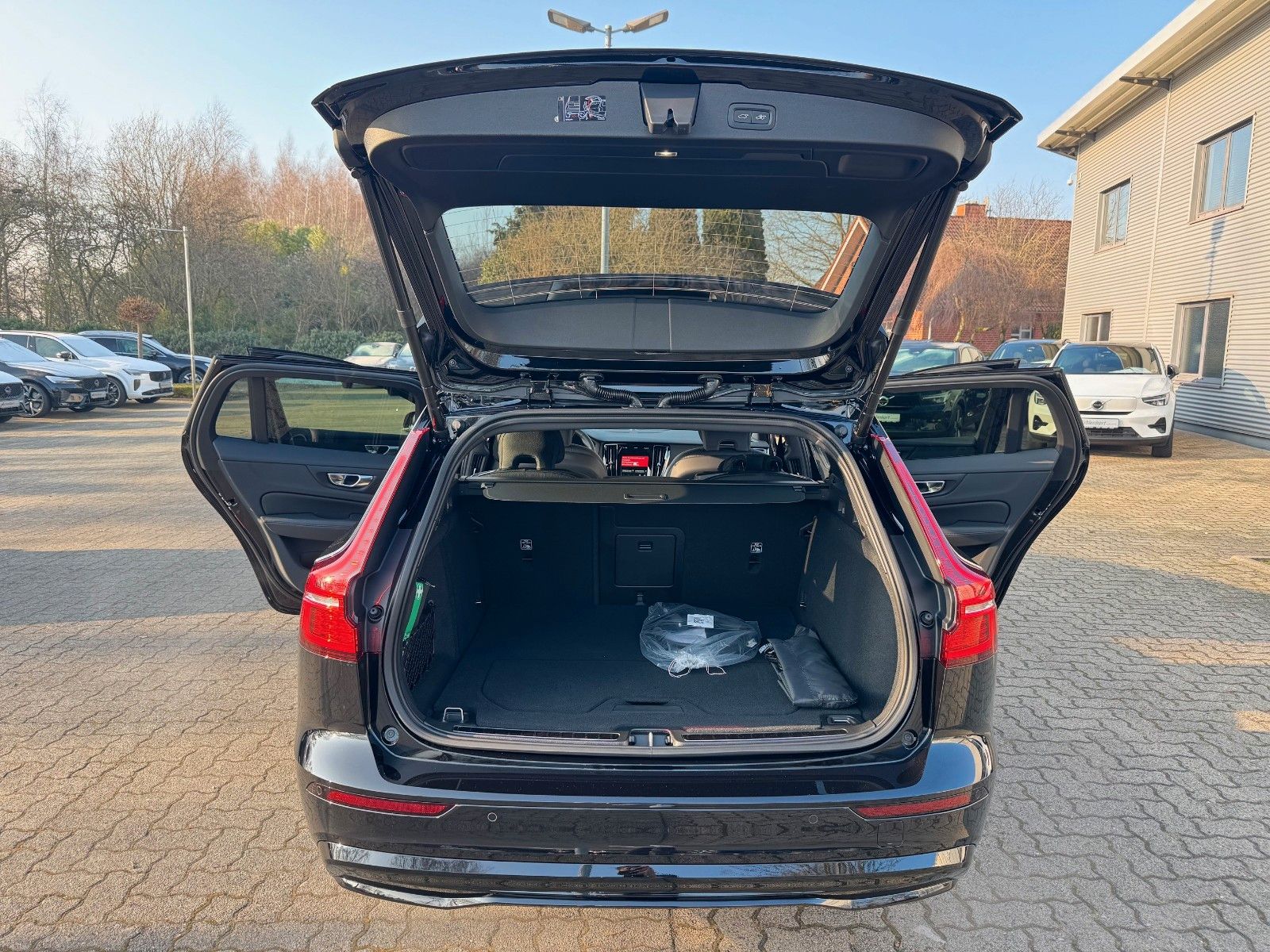 Volvo V60 T6 Recharge AWD Geartronic Automatik Plus Dark - Business Edition - Modelljahr 2026 - Sofort lieferbar - inklusive Winter-Paket bestehend aus Lenkradheizung, Sitzheizung hinten (äußere Fondsitze), Sitzheizung vorn, Standheizung mit Timer (elektrisch betrieben), Business Edition bestehend aus Frontscheibenheizung, Scheinwerferreinigungsanlage, Seiten- und Heckfenster abgedunkelt (ab B-Säule), Voll-LED-Scheinwerfer "Thors Hammer" Active High Beam mit erweitertem Fernlicht, dynamischem Kurvenlicht, intelligentem Fernlichtassistenten mit adaptiver Leuchtweitenregulierung und integriertem LED-Tagfahrlicht, 18" Leichtmetallräder 5-Doppelspeichen-Design Diamantschnitt/Graphitoptik, Adaptive Cruise Control, Ambientebeleuchtung, Android Infotainmentsystem (9"-Touchscreen (22,9-cm-Diagonale), Bluetooth®-Freisprecheinrichtung inkl. Audiostreaming, Digitale Fahrzeugbedienungsanleitung, Digitaler Radioempfang (DAB+), 2 USB-C-Anschlüsse), Antriebsart: Allradantrieb AWD, Audiosystem Premium Sound by Harman Kardon® (600 Watt Leistung - 14 Lautsprecher - Fresh Air™ Subwoofer - Dirac Unison™ Soundoptimierung), Befestigungssystem für Tragetaschen im Gepäckraum, Beinauflage einstellbar für Fahrer- und Beifahrersitz, Dachhimmel in Anthrazit, Digital Services (Google Services, Volvo On Call), Digitale Instrumentierung 2. Generation, Driver Awareness bestehend aus Blind Spot Information System (BLIS®) – Totwinkelassistent inkl. Spurwechsel-Warnung vor sich schnell nähernden Fahrzeugen inkl. Lenkeingriff bei Nichtbeachtung der Warnsignale, Cross Traffic Alert (CTA) – Querverkehrs-Warnung mit Bremseingriff – Warnung vor sich seitlich nähernden Fahrzeugen, Fahrradfahrern und Fußgängern beim rückwärtigen Ausparken inkl. Bremsung bis zum Stillstand bei Nichtbeachtung der Warnsignale, Heckaufprallabschwächung – Präventivschutz bei drohenden Heckkollisionen durch schnelles Aufleuchten des Warnblinklichts, Festbremsen des Fahrzeugs und Straffen der Gurte, Einparkhilfe vorn und hinten mit automatischem Bremseingriff (hinten) inkl. Rückfahrkamera, Elektrisch einstellbarer Fahrer- und Beifahrersitz mit Memoryfunktion für Fahrersitz-, Beifahrersitz- und Außenspiegeleinstellung (in Funkfernbedienung gespeichert), Erweitertes Luftreinigungssystem mit Feinstaubfilterung nach Luftqualitätsstandard PM2,5, Getriebe Automatik - Geartronic (8-Stufen), Heckklappenautomatik (elektrisch), Keyless Drive (elektronisches Zugangssystem) mit sensorgesteuerter Heckklappe, beleuchteten Türgriffen und Bodenleuchten, Klimaautomatik mit getrennter Temperaturregelung für Fahrer und Beifahrer, Kopfstützen der 2. Sitzreihe umlegbar (elektrisch), Ladekabel Typ 2/Typ 2 (Mode 3), 6 m Länge, 3-phasig, 16A, Lendenwirbelstütze (4-Wege, elektrisch einstellbar) für Fahrer- und Beifahrersitz, Lenkradheizung, Metallic Lackierung in Onyx Black, Mittelarmlehne vorn mit integriertem Staufach und Getränkehaltern, One Pedal Drive, Pilot Assist (Spurführungsassistent mit adaptiver Geschwindigkeitsregelanlage bis zu Geschwindigkeiten von 130 km/h) inkl. Emergency Stop Assist (automatisches Nothaltesystem bei Nichtbeachtung von Warnhinweisen infolge von ausbleibenden Lenk-, Brems- und Beschleunigungsaktivitäten des Fahrers inkl. Aktivierung der Warnblinkanlage undautomatischer Bremsung bis zum Stillstand), Polsterung RA00 Leder/Ledernachbildung Anthrazit | Innendesign Anthrazit, Rücksitzlehnen im Verhältnis 40/60 oder komplett umlegbar mit Durchladefunktion, Safety Assistance: Automatisches Notbremssystem, Driver Alert − Aufmerksamkeitswarner, Lane Keeping Aid (LKA) − Aktiver Spurhalteassistent, Road Sign Information (RSI) − Verkehrszeichenerkennung u.v.m. Sport-Außenspiegel in Hochglanzschwarz, Sport-Frontgrill mit horizontalen Streben und Grilleinfassung in Hochglanzschwarz, Sportliche Front- und Heckschürze, Überführungskosten u.v.m.