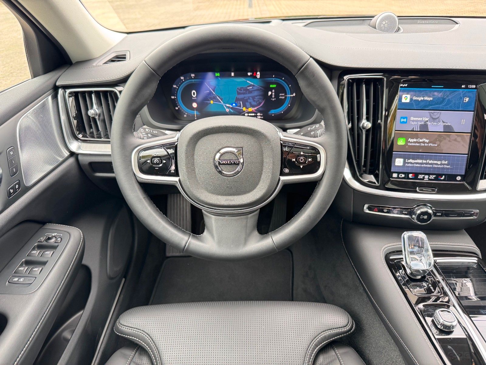 Volvo V60 T8 Recharge AWD Geartronic Automatik Ultra Dark inklusive Winter-Paket bestehend aus Lenkradheizung, Sitzheizung hinten (äußere Fondsitze), Sitzheizung vorn, Standheizung mit Timer (elektrisch betrieben), Business-Paket bestehend aus High-Fidelity-Audiosystem von Bowers & Wilkins, Massagefunktion für Fahrer- und Beifahrersitz, Parkkamera mit 360° Surround View inkl. Einparkhilfe vorn und hinten mit automatischem Bremseingriff (hinten), Seiten- und Heckfenster abgedunkelt (ab B-Säule), 19" Leichtmetallräder 5-Dreierspeichen-Design Diamantschnitt/Hochglanzschwarz, 2tes Ladekabel Typ2/Typ2, Akustikverglasung für die Seitenfenster, Alarmanlage, Allradantrieb AWD, Android Infotainmentsystem (9"-Touchscreen (22,9-cm-Diagonale), Bluetooth®-Freisprecheinrichtung inkl. Audiostreaming, Digitale Fahrzeugbedienungsanleitung, Digitaler Radioempfang (DAB+), 2 USB-C-Anschlüsse (kompatibel mit Apple iPod®/iPhone®/iPad), Anhängerkupplung schwenkbar, semi-elektrisch (Anhängelast 2.000kg), Beinauflage einstellbar für Fahrer- und Beifahrersitz, Digital Services (Google Services, Volvo On Call), Digitale Instrumentierung 2. Generation, Distanzwarner, Driver Assistance bestehend aus Adaptive Geschwindigkeitsregelanlage, Emergency Stop Assist (automatisches Nothaltesystem bei Nichtbeachtung von Warnhinweisen infolge von ausbleibenden Lenk-, Brems- und Beschleunigungsaktivitäten des Fahrers inkl. Aktivierung der Warnblinkanlage und automatischer Bremsung bis zum Stillstand), Pilot Assist (Spurführungsassistent mit adaptiver Geschwindigkeitsregelanlage bis zu Geschwindigkeiten von 130 km/h), Driver Awareness bestehend aus Blind Spot Information System (BLIS®) – Totwinkelassistent inkl. Spurwechsel-Warnung vor sich schnell nähernden Fahrzeugen inkl. Lenkeingriff bei Nichtbeachtung der Warnsignale, Cross Traffic Alert (CTA) – Querverkehrs-Warnung mit Bremseingriff – Warnung vor sich seitlich nähernden Fahrzeugen, Fahrradfahrern und Fußgängern beim rückwärtigen Ausparken inkl. Bremsung bis zum Stillstand bei Nichtbeachtung der Warnsignale, Heckaufprallabschwächung – Präventivschutz bei drohenden Heckkollisionen durch schnelles Aufleuchten des Warnblinklichts, Festbremsen des Fahrzeugs und Straffen der Gurte, Elektrisch einstellbarer Fahrersitz mit Memoryfunktion für Fahrersitz-, Beifahrersitz- und Außenspiegeleinstellung (in Funkfernbedienung gespeichert), Erweitertes Luftreinigungssystem mit Feinstaubfilterung nach Luftqualitätsstandard PM2,5, Gepäckraum-Trennnetz, Getriebe Automatik - Geartronic (8-Stufen), Head-up Display, Heckklappenautomatik (elektrisch), Keyless Drive (elektronisches Zugangssystem) mit sensorgesteuerter Heckklappe, beleuchteten Türgriffen und Bodenleuchten, Klimaautomatik mit getrennter Temperaturregelung für Fahrer und Beifahrer und zusätzlichen Belüftungsdüsen für die Fondsitze (in B-Säule integriert), Kopfstützen der 2. Sitzreihe umlegbar (elektrisch), Ladekabel SchuKo/Typ 2 (Mode 2), 7 m Länge, 1-phasig, 10A, Lane Keeping Aid (LKA) − Aktiver Spurhalteassistent, Lendenwirbelstütze (4-Wege, elektrisch einstellbar) für Fahrer- und Beifahrersitz, Metallic Lackierung in Onyx Black, Panorama-Glasschiebedach mit Hebefunktion und integriertem stufenlos einstellbarem Sonnenschutz (elektrisch), Polsterung RC00 Nappaleder/Ledernachbildung Komfortsitze in Anthrazit mit aktiver Sitzbelüftung und elektrisch einstellbaren Seitenwangen für Fahrer- und Beifahrersitz | Innendesign Anthrazit, Road Sign Information (RSI) − Verkehrszeichenerkennung, Scheinwerferreinigungsanlage, Smartphone Integration Apple CarPlay™, Voll-LED-Scheinwerfer „Thors Hammer“ Active High Beam mit erweitertem Fernlicht, dynamischem Kurvenlicht, intelligentem Fernlichtassistenten mit adaptiver Leuchtweitenregulierung und integriertem LED-Tagfahrlicht, Zwei USB-C-Schnittstellen an der Rückseite der Tunnelkonsole u.v.m.Deutscher Jungwagen vom Volvo-Vertragspartner. KEIN Re-Import! 1. Hand! UNFALLFREI! Mehrwertsteuer ausweisbar.