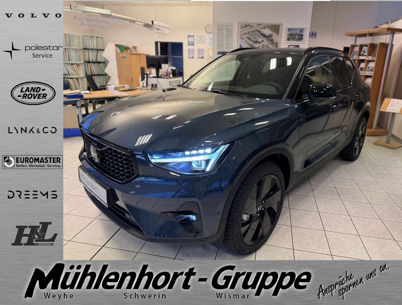 Volvo XC40 B3 Benzin DKG Automatik Ultra - Black Edition - Modelljahr 2026 - Sofort lieferbar - inklusive Licht-Paket bestehend aus LED-Nebelscheinwerfer, Pixel-LED-Scheinwerfer "Thors Hammer" mit erweitertem Fernlicht, dynamischem Kurvenlicht, intelligentem Fernlichtassistenten mit adaptiver Leuchtweitenregulierung, Scheinwerferreinigungsanlage, 20" Leichtmetallräder 5-Doppelspeichen-Design Hochglanzschwarz, Ambientebeleuchtung, Android Infotainmentsystem (9"-Touchscreen (22,9-cm-Diagonale), Bluetooth®-Freisprecheinrichtung inkl. Audiostreaming, Digitale Fahrzeugbedienungsanleitung, Digitaler Radioempfang (DAB+), Anhängerkupplung schwenkbar, semielektrisch (Anhängelast 1.600kg), Applikationen am Fahrzeugheck in Hochglanzschwarz, Audiosystem Premium Sound by Harman Kardon® (600 Watt Leistung - 13 Lautsprecher -Fresh Air™ Subwoofer -Dirac Unison™ Soundoptimierung), Beinauflage einstellbar (manuell) für Fahrer- und Beifahrersitz, Black Edition Sport-Frontgrill in Hochglanzschwarz, Dachreling in Hochglanzschwarz (integriert), Digitale Instrumentierung 2. Generation, Driver Awareness bestehend aus Blind Spot Information System (BLIS®) – Totwinkelassistent inkl. Spurwechsel-Warnung vor sich schnell nähernden Fahrzeugen inkl. Lenkeingriff bei Nichtbeachtung der Warnsignale, Cross Traffic Alert (CTA) – Querverkehrs-Warnung mit Bremseingriff – Warnung vor sich seitlich nähernden Fahrzeugen, Fahrradfahrern und Fußgängern beim rückwärtigen Ausparken inkl. Bremsung bis zum Stillstand bei Nichtbeachtung der Warnsignale, Heckaufprallabschwächung – Präventivschutz bei drohenden Heckkollisionen durch schnelles Aufleuchten des Warnblinklichts, Festbremsen des Fahrzeugs und Straffen der Gurte, Elektrisch einstellbarer Fahrer- und Beifahrersitz mit Memoryfunktion für Fahrersitz- und Außenspiegeleinstellungen (in Funkfernbedienung gespeichert), Erweitertes Luftreinigungssystem mit Feinstaubfilterung nach Luftqualitätsstandard PM2,5, Gepäckraum-Trennnetz, Heckklappenautomatik (elektrisch), Induktives Smartphone-Ladesystem (Qi-Standard), Innen- und Außenspiegel mit Abblendautomatik, Keyless Drive (elektronisches Zugangssystem) mit sensorgesteuerter Heckklappe, beleuchteten Türgriffen und Bodenleuchten, Klimaautomatik mit 2-Zonen-Temperaturregelung, Kopfstützen der 2. Sitzreihe umlegbar (elektrisch), Lendenwirbelstütze (4-Wege, elektrisch einstellbar) für Fahrer- und Beifahrersitz, Lenkradheizung, Metallic Lackierung in Denim Blue, Mittelarmlehne hinten mit zwei integrierten Getränkehaltern, Mittelarmlehne vorn mit integriertem Staufach und zwei Getränkehaltern, Panorama-Glasschiebedach mit Hebefunktion und integriertem stufenlos einstellbarem Sonnenschutz (elektrisch), Parkkamera mit 360° Surround View inkl. Einparkhilfe vorn, seitlich und hinten mit automatischem Bremseingriff (hinten), Pilot Assist (Spurführungsassistent mit adaptiver Geschwindigkeitsregelanlage bis zuGeschwindigkeiten von 130 km/h) inkl. Emergency Stop Assist (automatisches Nothaltesystem bei Nichtbeachtung von Warnhinweisen infolge von ausbleibenden Lenk-, Bremsund Beschleunigungsaktivitäten des Fahrers inkl. Aktivierung der Warnblinkanlage undautomatischer Bremsung bis zum Stillstand), Polsterung R980 Connect Textil/Microtech (Ledernachbildung) inkl. Mittelarmlehne hinten, Seitenfensterzierleiste in Hochglanzschwarz, Seiten- und Heckfenster abgedunkelt (ab B-Säule), Smartphone Integration Apple CarPlay™, Sitzheizung vorne, Sport-Außenspiegel in Hochglanzschwarz, Sportliche Front- und Heckschürze, Standheizung mit Timer, Zwei USB-C-Anschlüsse in Mittelkonsole vorn und an der Rückseite der Tunnelkonsole, Überführungskosten u.v.m.Deutscher Neuwagen vom Volvo-Vertragspartner. KEIN RE-IMPORT!
