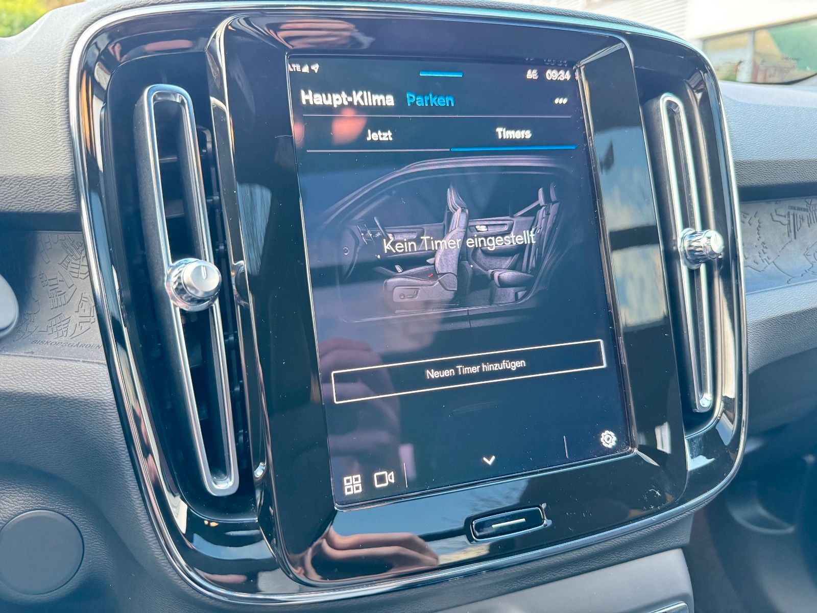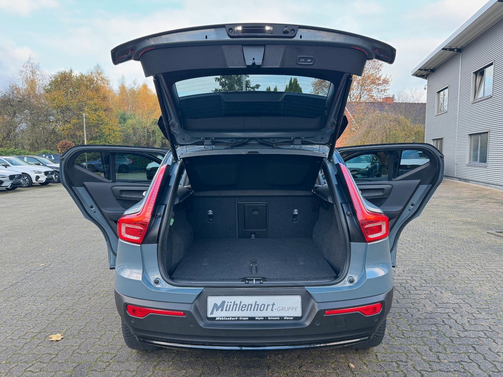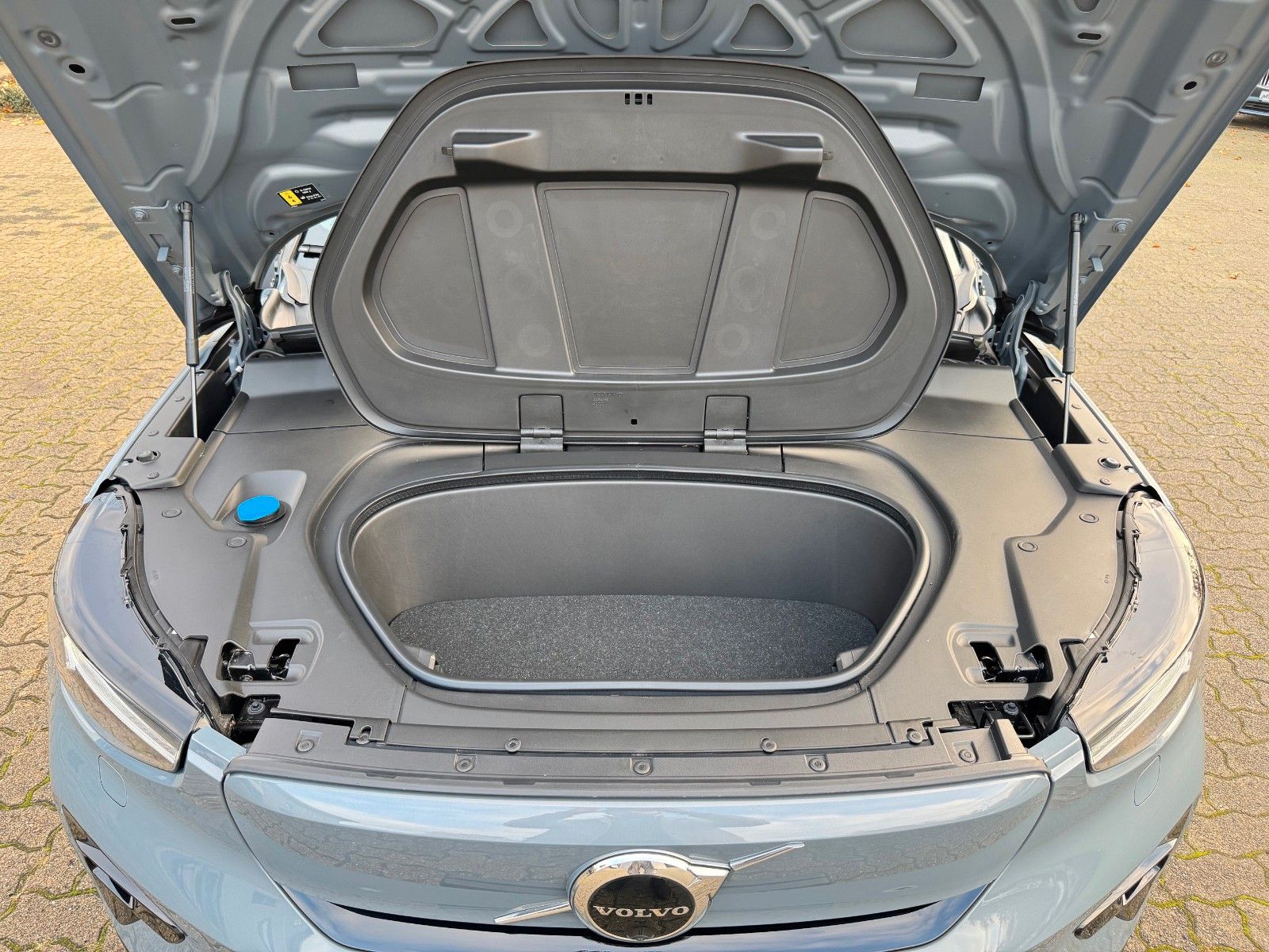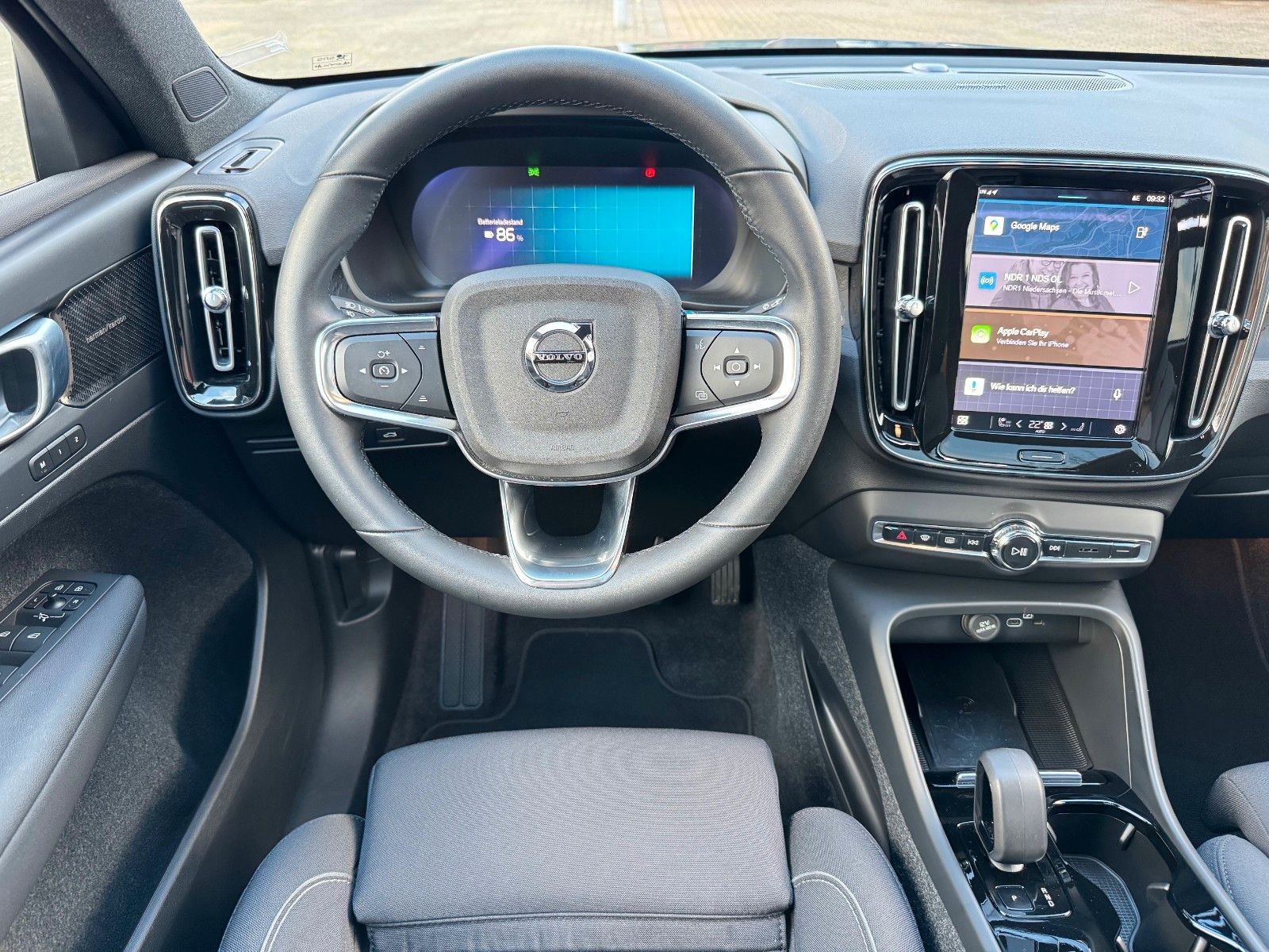 Volvo XC40 Recharge Twin Motor AWD Ultimate inklusive Winter-Paket bestehend aus Lenkradheizung, Sitzheizung vorne, Standheizung mit Timer (elektrisch), Wärmepumpe, 19" Leichtmetallräder 5-Doppelspeichen Sport-Design Diamantschnitt/Hochglanzschwarz mit Ganzjahresbereifung, Alarmanlage, Allradantrieb AWD, Android Infotainmentsystem (9"-Touchscreen (22,9-cm-Diagonale), Bluetooth®-Freisprecheinrichtung inkl. Audiostreaming, Digitale Fahrzeugbedienungsanleitung, Digitaler Radioempfang (DAB+), Over-the-air Updates (OTA), Audiosystem Premium Sound by Harman Kardon® (600 Watt Leistung - 13 Lautsprecher - Fresh Air™ Subwoofer - Dirac Unison™ Soundoptimierung), Automatisches Notbremssystem, Ausklappbarer (Taschen-) Haken am Handschuhfach, Beinauflage einstellbar (manuell) für Fahrer- und Beifahrersitz, Digital Services (Google Services, Volvo On Call), Digitale Instrumentierung 2. Generation, Driver Assistance bestehend aus Adaptive Geschwindigkeitsregelanlage, Emergency Stop Assist (automatisches Nothaltesystem bei Nichtbeachtung von Warnhinweisen infolge von ausbleibenden Lenk-, Brems- und Beschleunigungsaktivitäten des Fahrers inkl. Aktivierung der Warnblinkanlage und automatischer Bremsung bis zum Stillstand), Pilot Assist (Spurführungsassistent mit adaptiver Geschwindigkeitsregelanlage bis zu Geschwindigkeiten von 130 km/h), Driver Awareness bestehend aus Blind Spot Information System (BLIS®) – Totwinkelassistent inkl. Spurwechsel-Warnung vor sich schnell nähernden Fahrzeugen inklusive Lenkeingriff bei Nichtbeachtung der Warnsignale, Cross Traffic Alert (CTA) – Querverkehrs-Warnung mit Bremseingriff – Warnung vor sich seitlich nähernden Fahrzeugen, Fahrradfahrern und Fußgängern beim rückwärtigen Ausparken inkl. Bremsung bis zum Stillstand bei Nichtbeachtung der Warnsignale, Heckaufprallabschwächung – Präventivschutz bei drohenden Heckkollisionen durch schnelles Aufleuchten des Warnblinklichts, Festbremsen des Fahrzeugs und Straffen der Gurte, Elektrisch einstellbarer Fahrer- und Beifahrersitz mit Memoryfunktion für Fahrersitz- und Außenspiegeleinstellungen (in Funkfernbedienung gespeichert), Elektrische Vorklimatisierung des Fahrzeuginnenraums auf 22°C (max. 30 Minuten), Erweitertes Luftreinigungssystem mit Feinstaubfilterung nach Luftqualitätsstandard PM2,5, Faltbarer Laderaumboden mit Befestigungssystem für Tragetaschen im Gepäckraum, Gepäckraum-Trennnetz, Gepäckraum vorn (31 Liter), Heckklappenautomatik (elektrisch), Induktives Smartphone-Ladesystem (Qi-Standard), Keyless Drive (elektronisches Zugangssystem) mit sensorgesteuerter Heckklappe, beleuchteten Türgriffen und Bodenleuchten, Klimaautomatik mit 2-Zonen-Temperaturregelung, Kopfstützen der 2. Sitzreihe umlegbar (elektrisch), Ladekabel SchuKo/Typ 2 (Mode 2), Lane Keeping Aid (LKA) − Aktiver Spurhalteassistent, LED-Nebelscheinwerfer (im Frontspoiler integriert), LED-Scheinwerfer „Thors Hammer“ mit Fernlichtassistent und integriertem LED-Tagfahrlicht, Lendenwirbelstütze (4-Wege, elektrisch einstellbar) für Fahrer- und Beifahrersitz, Metallic Lackierung in Thunder Grey, Mittelarmlehne vorn mit integriertem Staufach und zwei Getränkehaltern, One Pedal Drive, Panorama-Glasschiebedach mit Hebefunktion mit integriertem, stufenlos einstellbarem Sonnenschutz (elektrisch), Parkkamera mit 360° Surround View inkl. Einparkhilfe vorn, seitlich und hinten mit automatischem Bremseingriff (hinten), Polsterung R780 Textil (Rivel Chine) inkl. Mittelarmlehne hinten, Road Sign Information (RSI) − Verkehrszeichenerkennung, Rücksitze im Verhältnis 40/60 oder komplett umlegbar, Scheinwerferreinigungsanlage, Seiten- und Heckfenster abgedunkelt (ab B-Säule), Zwei USB-C-Anschlüsse im Mitteltunnel (vorn und hinten) u.v.m.