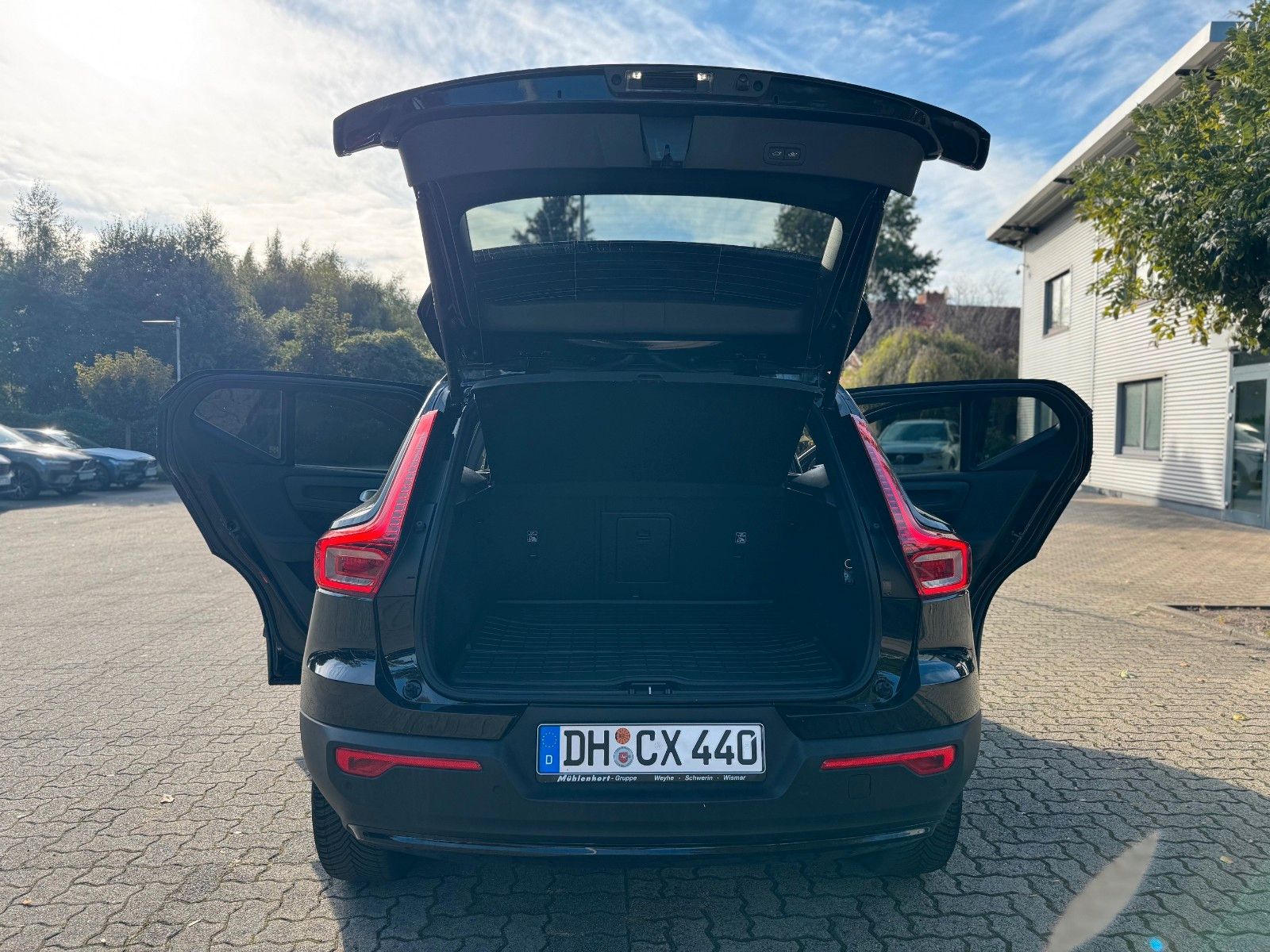 Volvo XC40 T2 Geartronic Automatik Plus Dark inklusive Licht-Paket bestehend aus LED-Scheinwerfer „Thors Hammer“ mit Fernlichtassistent und integriertem LED-Tagfahrlicht, LED-Nebelscheinwerfer, Scheinwerferreinigungsanlage, Fahrerassistenz-Paket bestehend aus Driver Assistance (Adaptive Geschwindigkeitsregelanlage), Driver Awareness-Paket bestehend aus Driver Awareness (BLIS), 19" Leichtmetallräder 5-Y-Speichen-Design, Ambientebeleuchtung (erweitert), Audiosystem Premium Sound by Harman Kardon®, Einparkhilfe vorn und hinten, Elektrisch einstellbarer Fahrer- und Beifahrersitz mit Memoryfunktion, Frontscheibenheizung, Gepäckraum-Schalenmatte, Gepäckraum-Trennnetz, Heckklappenautomatik (elektrisch), Induktives Smartphone-Ladesystem (Qi-Standard), Keyless Drive, Klimaautomatik mit 2-Zonen-Temperaturregelung, Kopfstützen der 2. Sitzreihe umlegbar (elektrisch), Lenkradheizung, Metallic Lackierung in Onyx Black, Notrad, Parkkamera mit 360° Surround View, R7C0 Textil (Rivel Chine) Komfortsitze, Seiten- und Heckfenster abgedunkelt (ab B-Säule), Seitensensoren, Sensus Navigationssystem, Sitzheizung vorne, Smartphone Integration Apple CarPlay™ und Android Auto™ u.v.m.