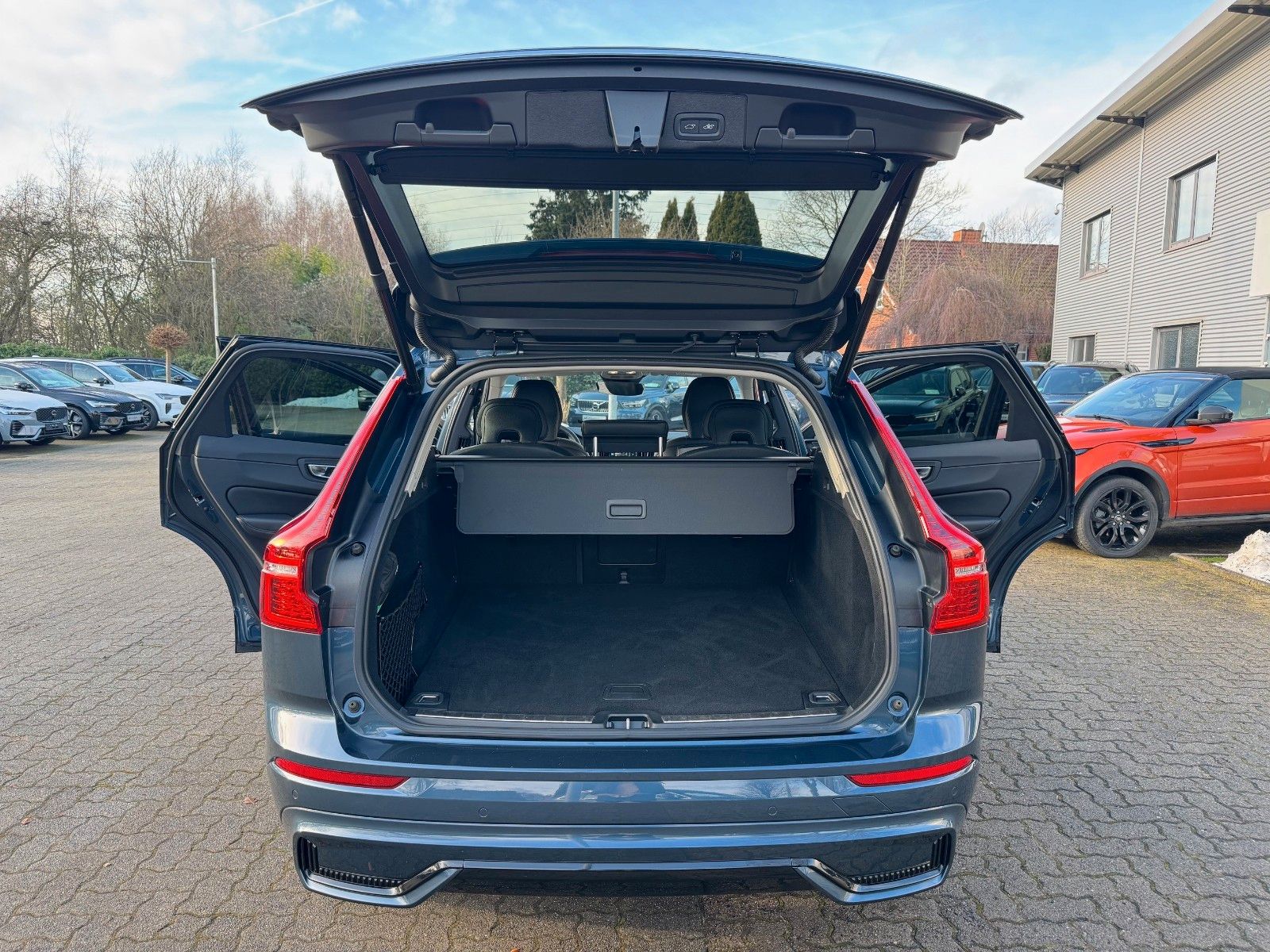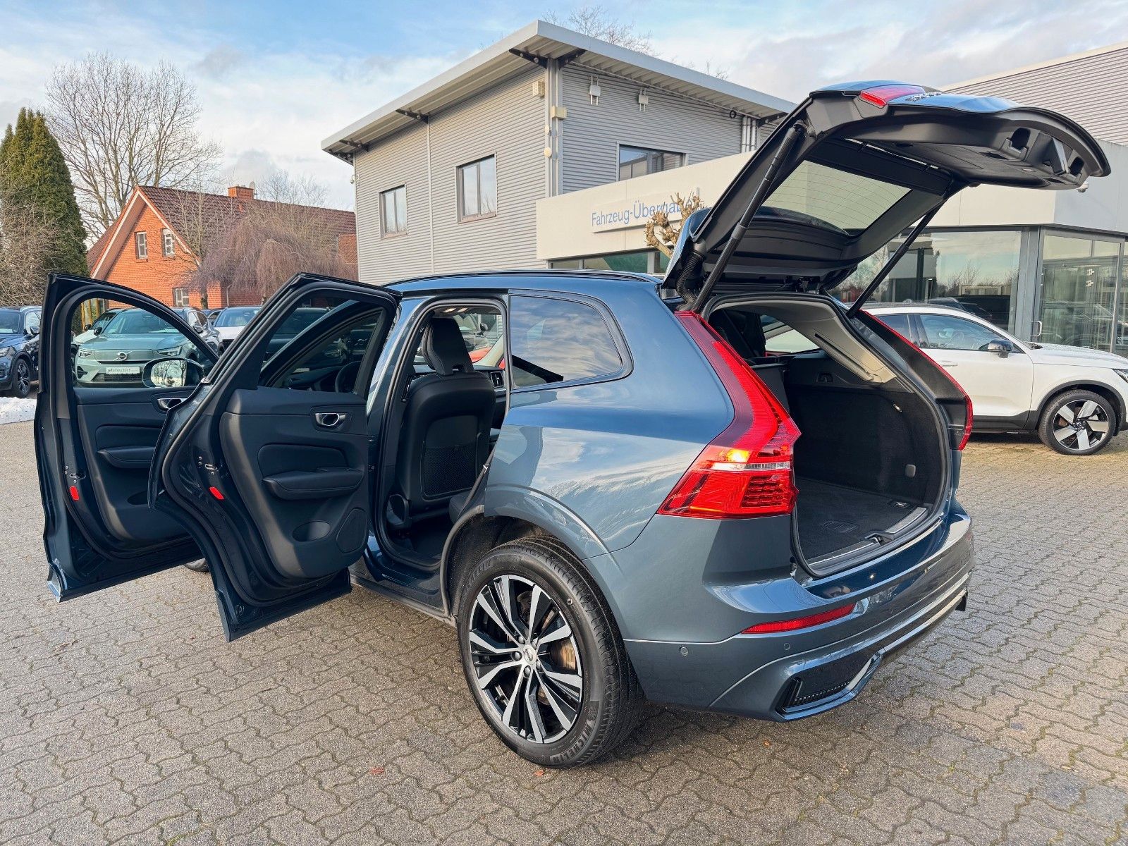 Volvo XC60 B4 Diesel Geartronic Automatik Plus Dark inklusive Licht-Paket bestehend aus LED-Nebelscheinwerfer (im Frontspoiler integriert), Scheinwerferreinigungsanlage, Voll-LED-Scheinwerfer "Thors Hammer" Active High Beam mit erweitertem Fernlicht, dynamischem Kurvenlicht, intelligentem Fernlichtassistenten mit adaptiver Leuchtweitenregulierung und integriertem LED-Tagfahrlicht, Winter-Paket bestehend aus Lenkradheizung, Sitzheizung hinten (äußere Fondsitze), Sitzheizung vorn, 20" Leichtmetallräder 5-Y-Speichen-Design Diamantschnitt/Hochglanzschwarz, Ambientebeleuchtung, Android Infotainmentsystem (9"-Touchscreen (22,9-cm-Diagonale), Bluetooth®-Freisprecheinrichtung inkl. Audiostreaming, Digitale Fahrzeugbedienungsanleitung, Digitaler Radioempfang (DAB+), 2 USB-C-Anschlüsse (kompatibel mit Apple iPod®/iPhone®/iPad®), Audiosystem High Performance Sound, Beinauflage einstellbar für Fahrer- und Beifahrersitz, Dachreling in Hochglanzschwarz (integriert), Digital Services (Google Services, Volvo On Call), Digitale Instrumentierung 2. Generation, Driver Assistance bestehend aus Adaptive Geschwindigkeitsregelanlage, Emergency Stop Assist (automatisches Nothaltesystem bei Nichtbeachtung von Warnhinweisen infolge von ausbleibenden Lenk-, Brems- und Beschleunigungsaktivitäten des Fahrers inkl. Aktivierung der Warnblinkanlage und automatischer Bremsung bis zum Stillstand), Pilot Assist (Spurführungsassistent mit adaptiver Geschwindigkeitsregelanlage bis zu Geschwindigkeiten von 130 km/h), Driver Awareness bestehend aus Blind Spot Information System (BLIS®) – Totwinkelassistent inkl. Spurwechsel-Warnung vor sich schnell nähernden Fahrzeugen inkl. Lenkeingriff bei Nichtbeachtung der Warnsignale, Cross Traffic Alert (CTA) – Querverkehrs-Warnung mit Bremseingriff – Warnung vor sich seitlich nähernden Fahrzeugen, Fahrradfahrern und Fußgängern beim rückwärtigen Ausparken inkl. Bremsung bis zum Stillstand bei Nichtbeachtung der Warnsignale, Heckaufprallabschwächung – Präventivschutz bei drohenden Heckkollisionen durch schnelles Aufleuchten des Warnblinklichts, Festbremsen des Fahrzeugs und Straffen der Gurte, Elektrisch einstellbarer Beifahrersitz mit Memoryfunktion, Elektrisch einstellbarer Fahrersitz mit Memoryfunktion für Fahrersitz- und Außenspiegeleinstellung (in Funkfernbedienung gespeichert), Erweitertes Luftreinigungssystem mit Feinstaubfilterung nach Luftqualitätsstandard PM2,5, Fensterumrandung in Hochglanzschwarz, Frontscheibenheizung, Getriebe Geartronic (8-Stufen), Haken im Gepäckraum (zur Befestigung von Einkaufstaschen), Heckklappenautomatik (elektrisch), Induktives Smartphone-Ladesystem (Qi-Standard), Keyless Drive (elektronisches Zugangssystem) mit sensorgesteuerter Heckklappe, beleuchteten Türgriffen und Bodenleuchten, Klimaautomatik mit getrennter Temperaturregelung für Fahrer und Beifahrer und zusätzlichen Belüftungsdüsen für die Fondsitze (in B-Säule integriert), Kopfstützen der 2. Sitzreihe umlegbar (elektrisch), Metallic Lackierung in Denim Blue, Mittelarmlehne vorn mit integriertem Staufach und Getränkehaltern, Parkkamera mit 360° Surround View inkl. Einparkhilfe vorn und hinten mit automatischem Bremseingriff (hinten), Polsterung RA00 Leder/Ledernachbildung Anthrazit | Innendesign Anthrazit, Rücksitze im Verhältnis 40/60 oder komplett umlegbar mit Durchladefunktion, Safety Assistance: Automatisches Notbremssystem, Driver Alert − Aufmerksamkeitswarner, Lane Keeping Aid (LKA) − Aktiver Spurhalteassistent, Ready to Drive notification, Road Sign Information (RSI) − Verkehrszeichenerkennung u.v.m. Seiten- und Heckfenster abgedunkelt (ab B-Säule), Sport-Außenspiegel in Hochglanzschwarz, Sport-Frontgrill mit horizontalen Streben und Grilleinfassung in Hochglanzschwarz, Sportliche Front- und Heckschürze, Zwei USB-C-Schnittstellen an der Rückseite der Tunnelkonsole u.v.m.
