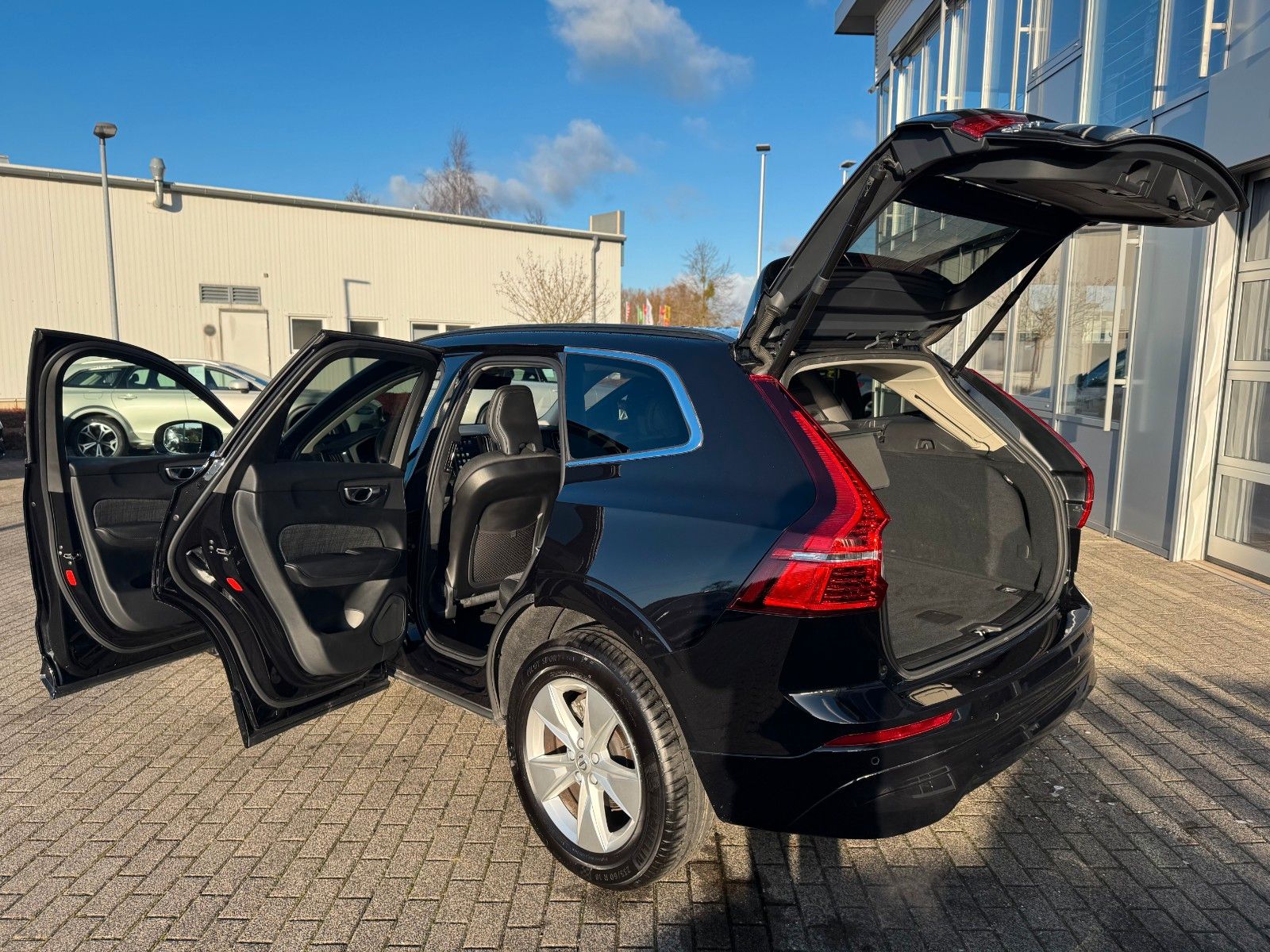 Volvo XC60 B5 Benzin AWD Geartronic Automatik Core inklusive Winter-Paket bestehend aus Lenkradheizung, Sitzheizung hinten (äußere Fondsitze), Sitzheizung vorne, Driver Assistance bestehend aus Adaptive Geschwindigkeitsregelanlage, Emergency Stop Assist (automatisches Nothaltesystem bei Nichtbeachtung von Warnhinweisen infolge von ausbleibenden Lenk-, Brems- und Beschleunigungsaktivitäten des Fahrers inkl. Aktivierung der Warnblinkanlage und automatischer Bremsung bis zum Stillstand), Pilot Assist (Spurführungsassistent mit adaptiver Geschwindigkeitsregelanlage bis zu Geschwindigkeiten von 130 km/h), Driver Awareness bestehend aus Blind Spot Information System (BLIS®) – Totwinkelassistent inkl. Spurwechsel-Warnung vor sich schnell nähernden Fahrzeugen inkl. Lenkeingriff bei Nichtbeachtung der Warnsignale, Cross Traffic Alert (CTA) – Querverkehrs-Warnung mit Bremseingriff – Warnung vor sich seitlich nähernden Fahrzeugen, Fahrradfahrern und Fußgängern beim rückwärtigen Ausparken inkl. Bremsung bis zum Stillstand bei Nichtbeachtung der Warnsignale, Heckaufprallabschwächung – Präventivschutz bei drohenden Heckkollisionen durch schnelles Aufleuchten des Warnblinklichts, Festbremsen des Fahrzeugs und Straffen der Gurte, 18" Leichtmetallräder 5-Speichen-Design, Android Infotainmentsystem (9"-Touchscreen (22,9-cm-Diagonale), Bluetooth®-Freisprecheinrichtung inkl. Audiostreaming, Digitale Fahrzeugbedienungsanleitung, Digitaler Radioempfang (DAB+), 2 USB-C-Anschlüsse (kompatibel mit Apple iPod®/iPhone®/iPad®), Antriebsart: Allradantrieb AWD, Audiosystem High Performance Sound (220 Watt Leistung - 10 Lautsprecher), Außenspiegel elektrisch einklappbar, Außenspiegel elektrisch einstellbar, Außenspiegel und Heckscheibe beheizbar (automatisch), Dachreling in Schwarz (integriert), Digital Services (Google Services, Volvo On Call), Digitale Instrumentierung 2. Generation, Einparkhilfe vorn und hinten mit automatischem Bremseingriff (hinten) inkl. Rückfahrkamera, Erweitertes Luftreinigungssystem mit Feinstaubfilterung nach Luftqualitätsstandard PM2,5, Fahrer- und Beifahrersitz höheneinstellbar (elektrisch) inkl. manueller Neigungseinstellung für den Fahrersitz, Frontgrill im Wasserfall-Design in Hochglanzschwarz, Gepäckraum-Trennnetz, Getriebe Automatik - Geartronic (8-Stufen), Haken im Gepäckraum (zur Befestigung von Einkaufstaschen), Heckklappenautomatik (elektrisch), Induktives Smartphone-Ladesystem (Qi-Standard), Innen- und Außenspiegel mit Abblendautomatik, ISOFIX-Aufnahmen für die äußeren Fondsitze, Keyless Drive (elektronisches Zugangssystem) mit sensorgesteuerter Heckklappe, beleuchteten Türgriffen und Bodenleuchten, Klimaautomatik mit getrennter Temperaturregelung für Fahrer und Beifahrer und zusätzlichen Belüftungsdüsen für die Fondsitze (in B-Säule integriert), Kopfstützen der 2. Sitzreihe umlegbar (elektrisch), LED-Scheinwerfer „Thors Hammer“ mit Fernlichtassistent und integriertem LED-Tagfahrlicht, Lendenwirbelstütze (2-Wege, elektrisch einstellbar) für Fahrer- und Beifahrersitz, Metallic Lackierung in Onyx Black, Mittelarmlehne vorn mit integriertem Staufach und Getränkehaltern, Multifunktionstasten am Lenkrad, Notrad, Premium Textil Komfortsitze, Rücksitze im Verhältnis 40/60 oder komplett umlegbar mit Durchladefunktion, Safety Assistance: Automatisches Notbremssystem, Driver Alert − Aufmerksamkeitswarner, Lane Keeping Aid (LKA) − Aktiver Spurhalteassistent, Ready to Drive notification, Road Sign Information (RSI) − Verkehrszeichenerkennung u.v.m. Seiten- und Heckfenster abgedunkelt (ab B-Säule), Smartphone Integration Apple CarPlay™, Zwei USB-C-Schnittstellen an der Rückseite der Tunnelkonsole u.v.m.