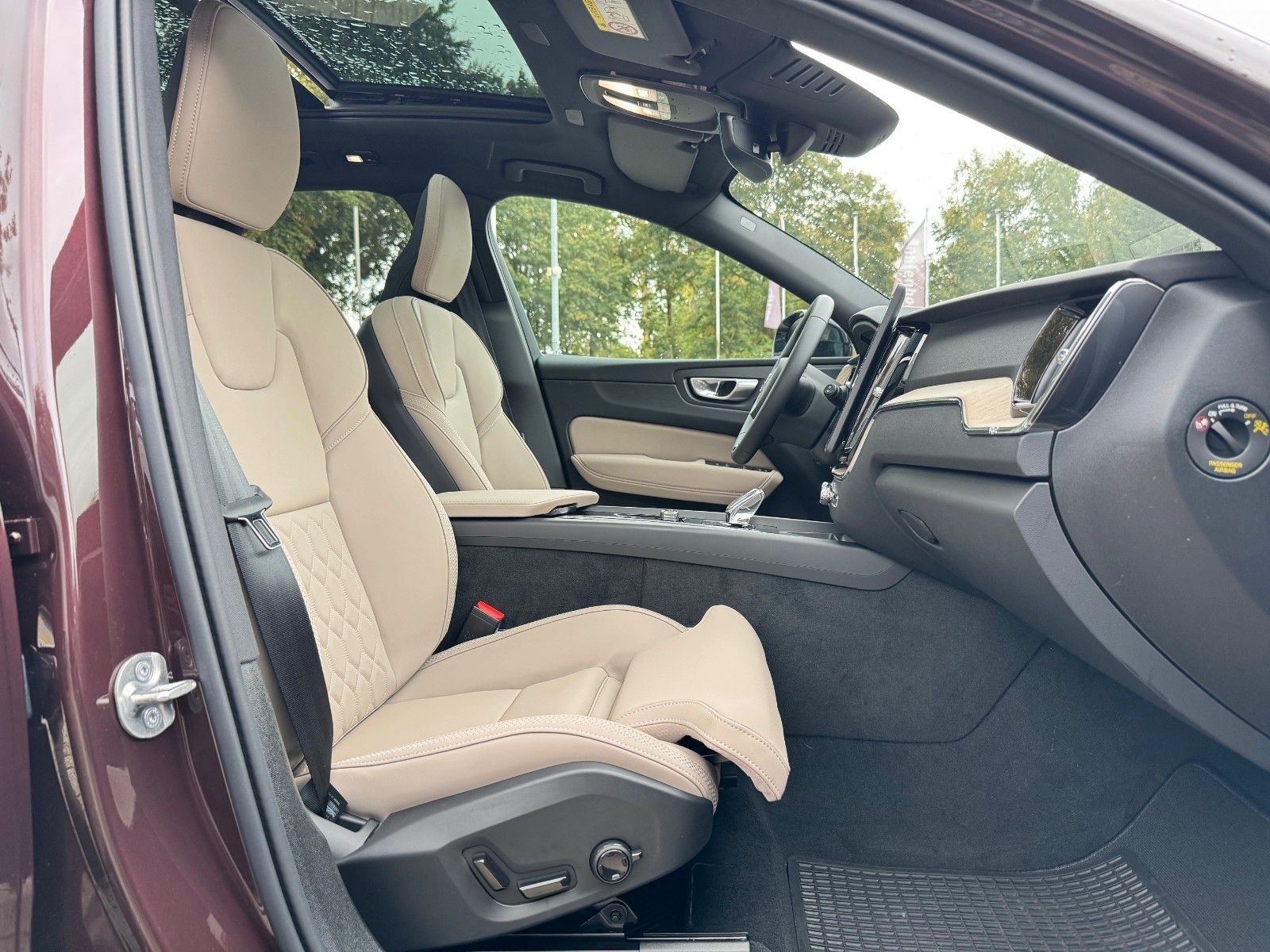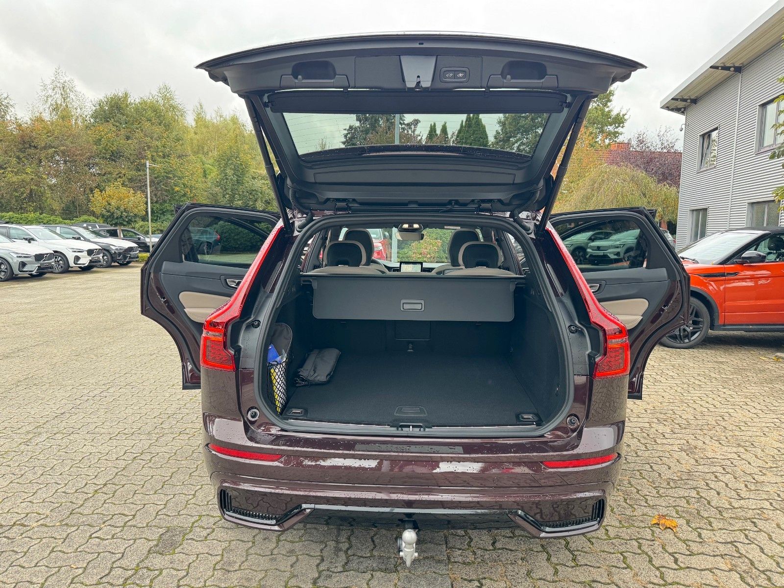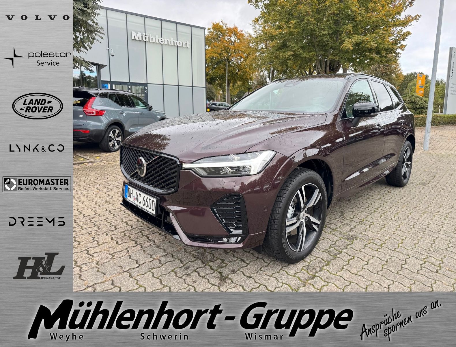 Volvo XC60 B5 Benzin AWD Geartronic Automatik Plus Dark - Neuwagen Modelljahr 2026 - Facelift - inklusive Licht-Paket bestehend aus LED-Nebelscheinwerfer (im Frontspoiler integriert), Scheinwerferreinigungsanlage, Voll-LED-Scheinwerfer "Thors Hammer" Active High Beam mit erweitertem Fernlicht, dynamischem Kurvenlicht, intelligentem Fernlichtassistenten mit adaptiver Leuchtweitenregulierung und -integriertem LED-Tagfahrlicht, Winter-Paket bestehend aus Lenkradheizung, Sitzheizung hinten (äußere Fondsitze), Sitzheizung vorne, Lagom-Paket bestehend aus Head-Up Display, Panorama-Glasschiebedach mit Hebefunktion und integriertem stufenlos einstellbarem Sonnenschutz (elektrisch), Parkkamera mit 360° Surround View inkl. Einparkhilfe vorn, seitlich und hinten mit automatischem Bremseingriff (hinten), 20" Leichtmetallräder 5-Y-Speichen-Design Diamantschnitt/Hochglanzschwarz (Sommerreifen), Ambientebeleuchtung, Android Infotainmentsystem (11,2"-Touchscreen (28,4-cm-Diagonale), Bluetooth®-Freisprecheinrichtung inkl. Audiostreaming, Digitale Fahrzeugbedienungsanleitung, Digitaler Radioempfang (DAB+), 2 USB-C-Anschlüsse), Anhängerkupplung schwenkbar, semi-elektrisch, Antriebsart: Allradantrieb AWD, Audiosystem Premium Sound by Harman Kardon® (600 Watt Leistung - 14 Lautsprecher - Fresh Air™ Subwoofer - Dirac Unison™ Soundoptimierung), Beinauflage einstellbar für Fahrer- und Beifahrersitz, Digital Services (Google Services, Volvo On Call), Digitale Instrumentierung 2. Generation, Driver Awareness bestehend aus Blind Spot Information System (BLIS®) – Totwinkelassistent inkl. Spurwechsel-Warnung vor sich schnell nähernden Fahrzeugen inkl. Lenkeingriff bei Nichtbeachtung der Warnsignale, Cross Traffic Alert (CTA) – Querverkehrs-Warnung mit Bremseingriff – Warnung vor sich seitlich nähernden Fahrzeugen, Fahrradfahrern und Fußgängern beim rückwärtigen Ausparken inkl. Bremsung bis zum Stillstand bei Nichtbeachtung der Warnsignale, Heckaufprallabschwächung – Präventivschutz bei drohenden Heckkollisionen durch schnelles Aufleuchten des Warnblinklichts, Festbremsen des Fahrzeugs und Straffen der Gurte, Elektrisch einstellbarer Fahrer- und Beifahrersitz mit Memoryfunktion für Fahrersitz-,Beifahrersitz- und Außenspiegeleinstellung (in Funkfernbedienung gespeichert), Erweitertes Luftreinigungssystem mit Feinstaubfilterung nach Luftqualitätsstandard PM2,5, Frontgrill im Volvo Iron Mark Dark-Design, Gepäckraum-Trennnetz, Heckklappenautomatik (elektrisch), Induktives Smartphone-Ladesystem (Qi-Standard), Keyless Drive (elektronisches Zugangssystem) mit sensorgesteuerter Heckklappe,beleuchteten Türgriffen und Bodenleuchten, Klimaautomatik mit getrennter Temperaturregelung für Fahrer und Beifahrer und zusätzlichen Belüftungsdüsen für die Fondsitze, Kopfstützen der 2. Sitzreihe umlegbar (elektrisch), Metallic Lackierung in Mulberry Red, Mittelarmlehne vorn mit integriertem Staufach und Getränkehaltern, Pilot Assist (Spurführungsassistent mit adaptiver Geschwindigkeitsregelanlage bis zuGeschwindigkeiten von 130 km/h) inkl. Emergency Stop Assist (automatisches Nothaltesystem bei Nichtbeachtung von Warnhinweisen infolge von ausbleibenden Lenk-, Bremsund Beschleunigungsaktivitäten des Fahrers inkl. Aktivierung der Warnblinkanlage undautomatischer Bremsung bis zum Stillstand), Polsterung RPE0 Nordico (Vinyl/Ledernachbildung) Kardamom | Innendesign Anthrazit/Kardamom, Rücksitzlehnen im Verhältnis 40/60 oder komplett umlegbar mit Durchladefunktion, Safety Assistance: Automatisches Notbremssystem, Distanzwarner, Lane Keeping Aid (LKA) Aktiver Spurhalteassistent, Road Sign Information (RSI) Verkehrszeichenerkennung u.v.m Schalthebel aus schwedischem Kristallglas von Orrefors®, Seiten- und Heckfenster abgedunkelt (ab B-Säule), Smartphone Integration Apple CarPlay™ & Android Auto, Sportliche Front- und Heckschürze u.v.m.